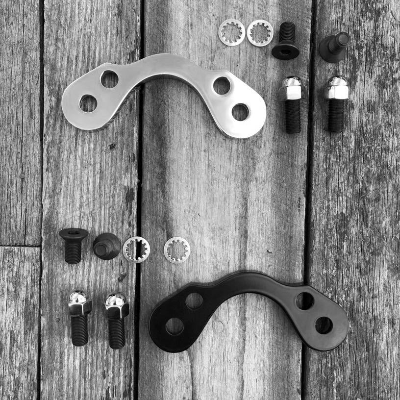 This kit enables the use of 3 piece Harley or aftermarket risers with 3.5" riser spacing or any 2 post type risers